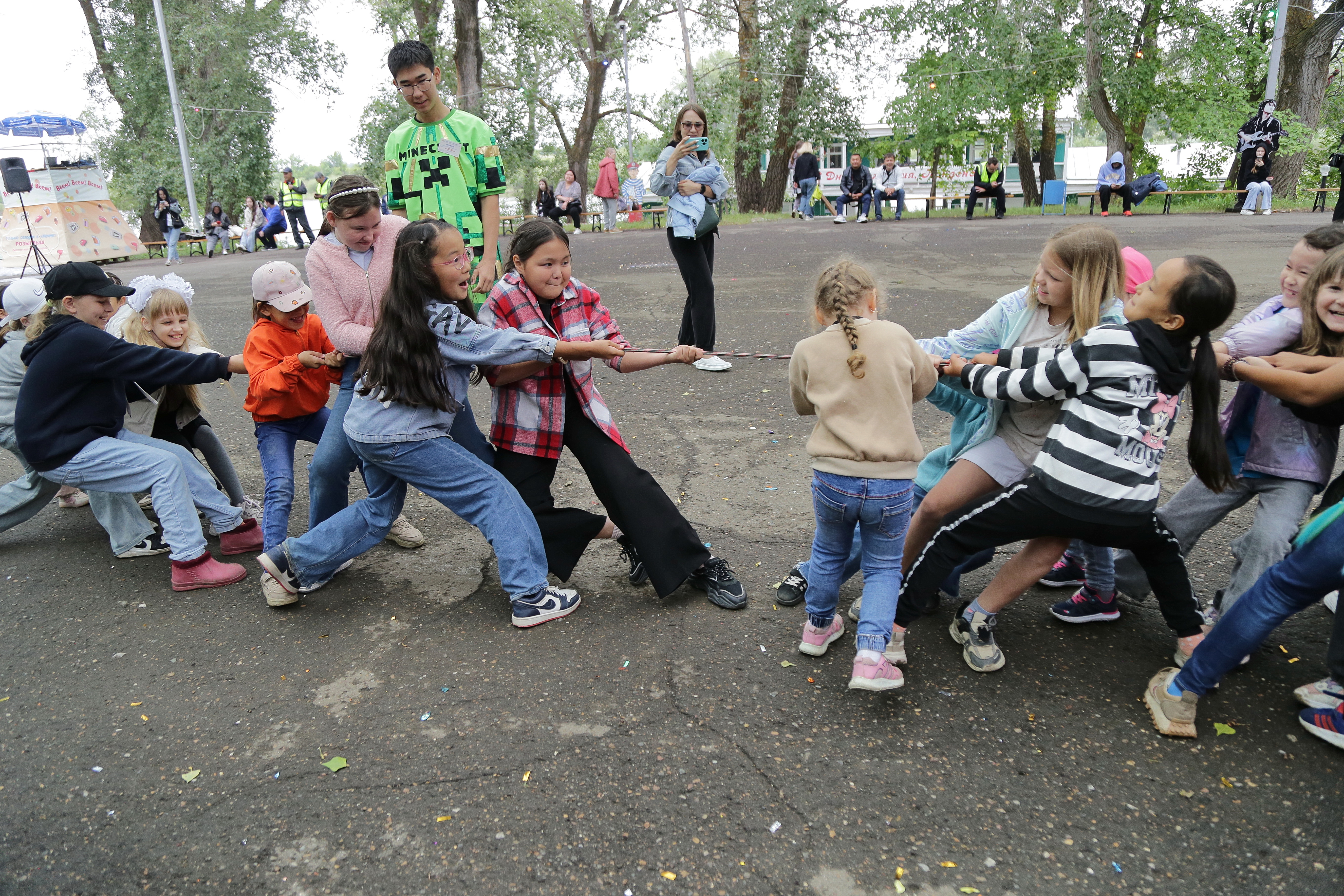 После обеденного перерыва особое внимание на празднике уделили маленьким гостям — в программе был предусмотрен детский час, который стал настоящим фейерверком радости. Для ребят устроили яркую и насыщенную программу с участием аниматоров. Их ждали современные и увлекательные игры — например, состязание из популярного шоу «Игра в кальмара», а также герои в костюмах из Minecraft и весёлые пираты. Дети с удовольствием танцевали, участвовали в конкурсах и с неподдельным интересом включались в каждую игру. Они были по-настоящему счастливы, а родители с восторгом наблюдали за тем, как их чада весело проводят время, смеются и радуются. В завершение детского часа каждому ребёнку вручили воздушные шары и сладкие подарки, что стало приятным финалом этого волшебного момента.
