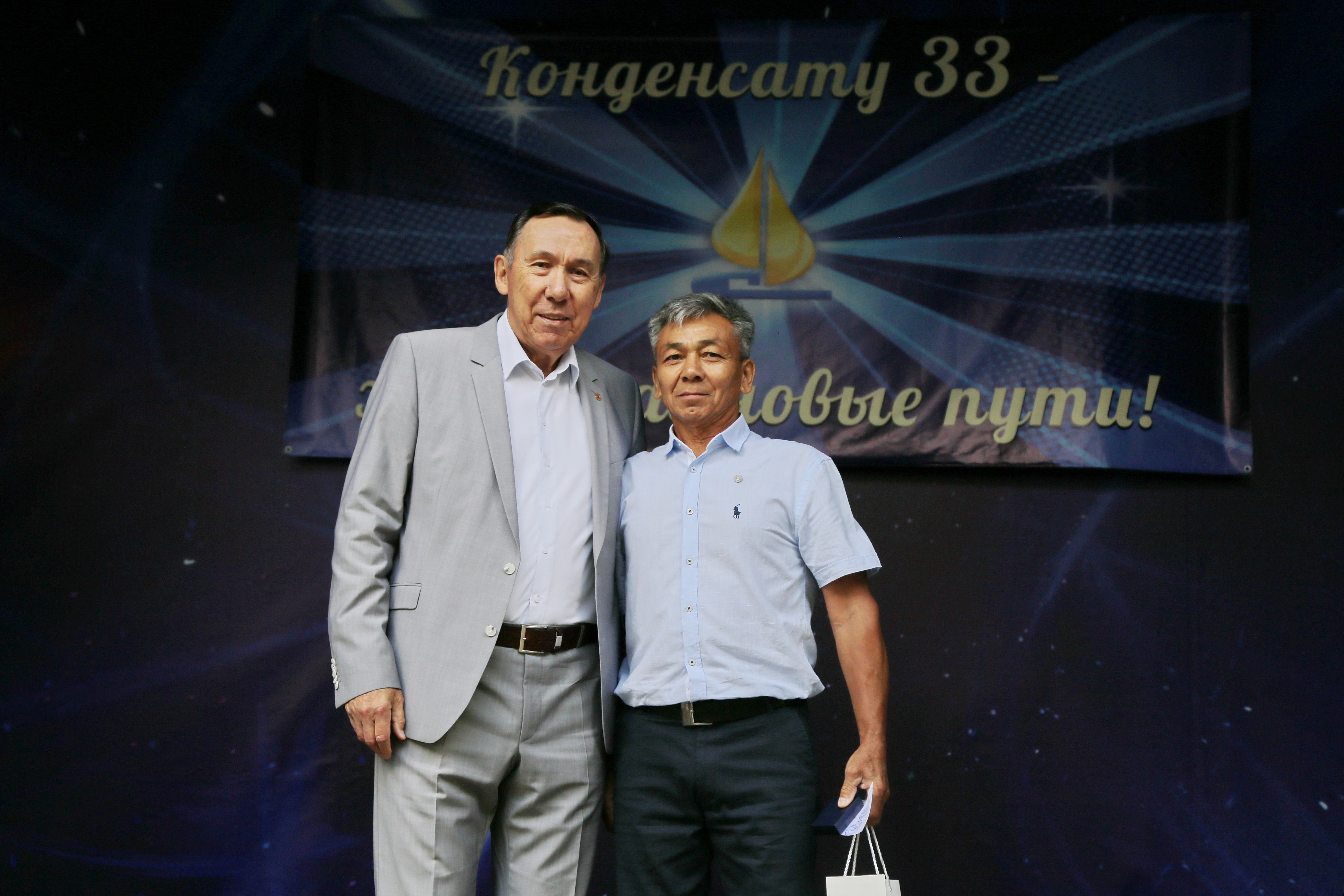 Первым для получения самой почётной награды — нагрудного Памятного знака «Конденсат» I степениза многолетний вклад в развитие АО «Конденсат» — вышел на сцену водитель бензовоза Гадельхан Гадельшиев, посвятивший «Конденсату» 27 лет своей жизни.